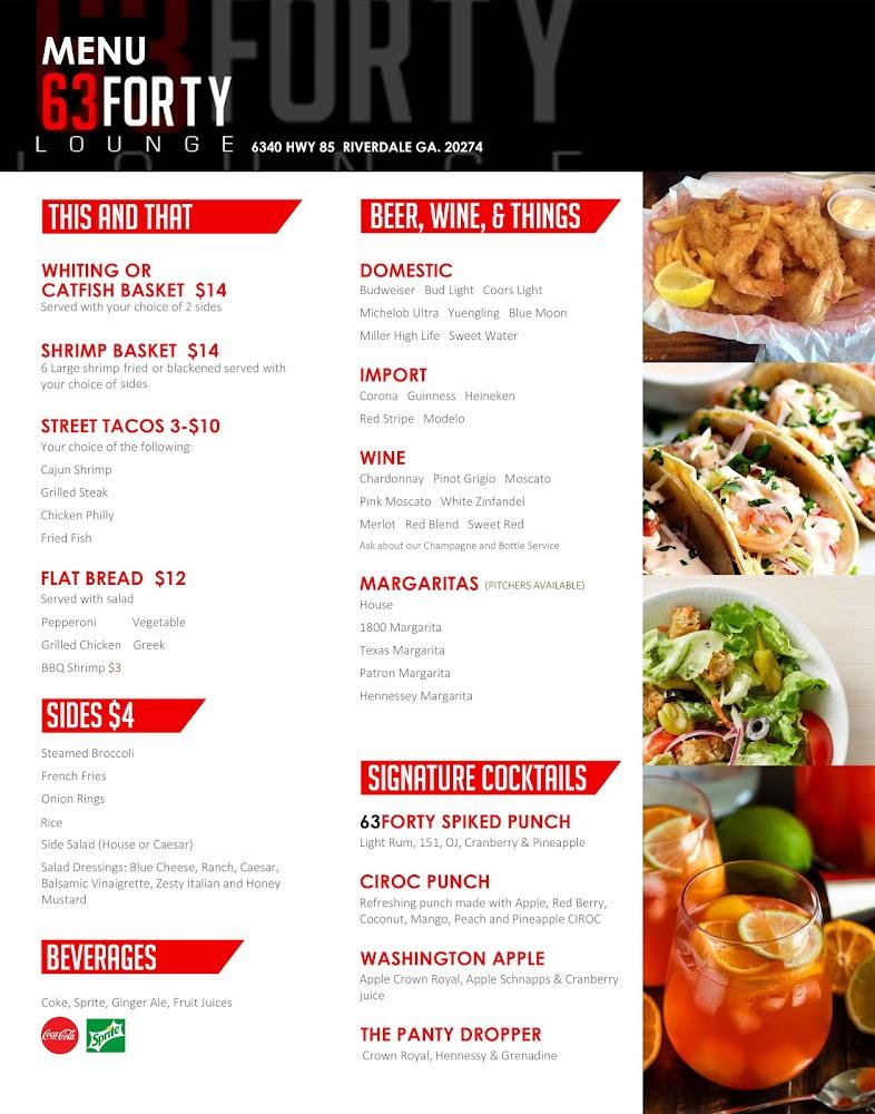 63Forty Lounge features a diverse menu that appeals to many tastes. Starters include favorites like quesadillas and catfish nuggets. The burger section boasts options, including the impressive 63Forty Burger and black bean burger. For lighter fare, salads offer a refreshing choice. Unique plates are featured, such as shrimp baskets and street tacos. Brunch items invite guests to indulge with dishes like chicken and waffles. An average price of $8.39 makes it accessible. Specialty offers on crab boil nights showcase culinary creativity. All menu items pair well with the vibrant drink selection. Dining here guarantees satisfaction, whether sharing plates or enjoying a quiet meal.