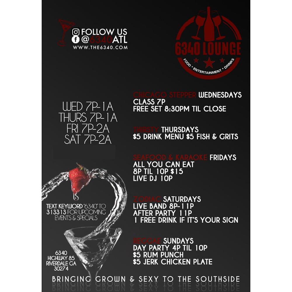 Welcome to 63Forty Lounge, your ultimate destination for relaxation and entertainment in Riverdale, GA. Nestled conveniently on GA-85, our inviting bar lounge offers a vibrant atmosphere perfect for groups and tourists alike. Enjoy our fantastic selection of cocktails, extensive beer options, and delicious food, all while catching live concerts or participating in karaoke nights. With amenities like an accessible entry, free Wi-Fi, and delightful happy hour specials, we cater to every need. Whether you choose to dine in, take out, or simply unwind on our terrace, 63Forty Lounge promises an unforgettable experience full of fun and flavor.